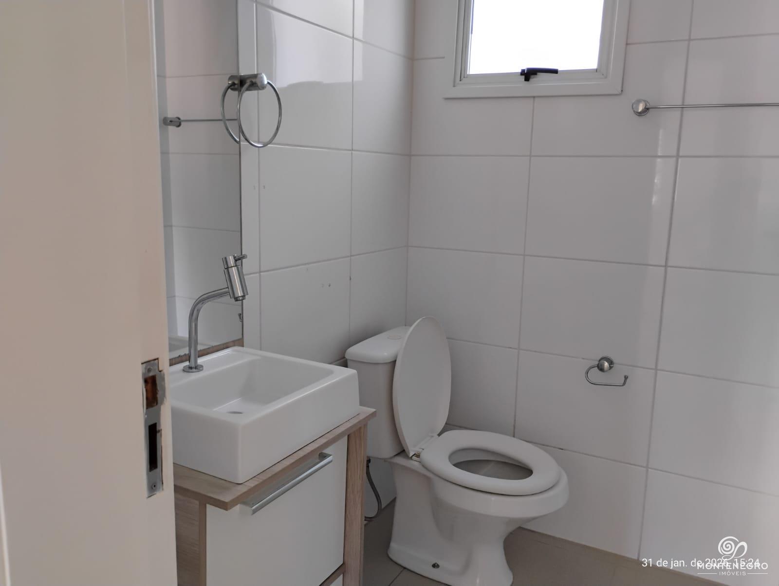 Este apartamento de 75,62m² no segundo andar oferece conforto e praticidade, com 3 dormitórios, banheiro social, lavabo, sala estar/jantar integradas, cozinha com churrasqueira e área de serviço. Conta com vaga de estacionamento coberta e um residencial completo que inclui academia, piscina, salão de festas, quiosque rústico com churrasqueira e varal coletivo, ideal para quem busca qualidade de vida e lazer.