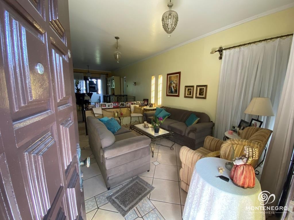 Ampla casa em alvenaria com terreno de 664 m² e uma área construída de 286,61 m², perfeita para quem busca conforto e espaço. Com dois níveis, oferece salas de estar, jantar e TV com lareira, escritório, uma suíte e mais dois dormitórios, além de cozinha, despensa, banheiro social, quiosque com churrasqueira e garagem para dois carros. No piso inferior, há um salão de festas, depósito com potencial para adega, lavanderia e um quiosque externo ideal para momentos de lazer.