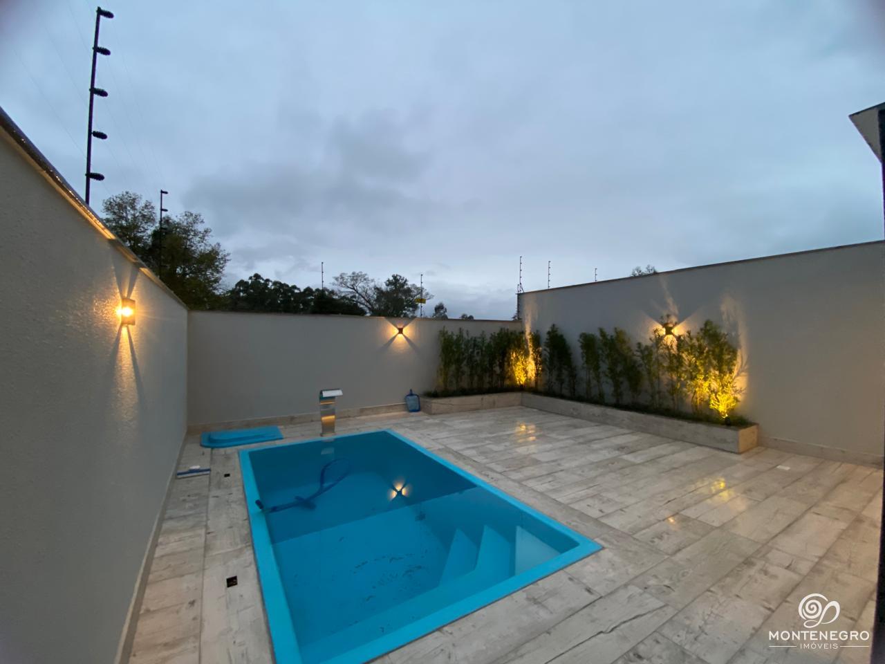 Excelente oportunidade de morar em um sobrado novo, localizado próximo ao Cantegril Clube, com fácil acesso a áreas de lazer, comércio e serviços. Este imóvel mobiliado possui uma ampla suíte com sacada, além de dois dormitórios, banheiro social, sala de estar e jantar integradas à cozinha com churrasqueira, lavabo, área de serviço e piscina aquecida com cascata e iluminação ? tudo pensando no seu conforto. Com sistema de água quente, aberturas em alumínio preto, piso porcelanato na área social e laminado nos dormitórios, oferece modernidade e praticidade.