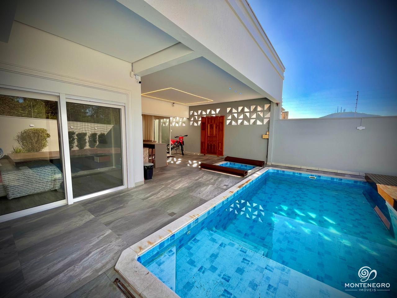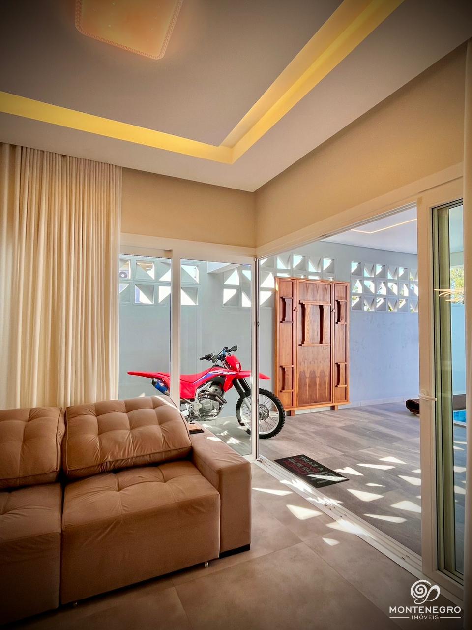Esta bela residência de 200m², situada em um terreno de 353,90m² no Bairro Senai, oferece uma distribuição moderna e funcional, com uma suíte com closet, mais dois dormitórios e ambientes integrados, incluindo uma ampla área social com lareira, sala de jantar, cozinha e área gourmet com churrasqueira. Com acabamentos de alto padrão, como aberturas automatizadas em PVC, sancas em gesso, piso vinílico e porcelanato, além de sistema de aquecimento a gás, monitoramento por câmeras e energia fotovoltaica, a casa proporciona conforto, segurança e economia.