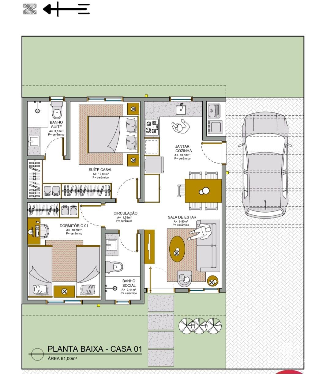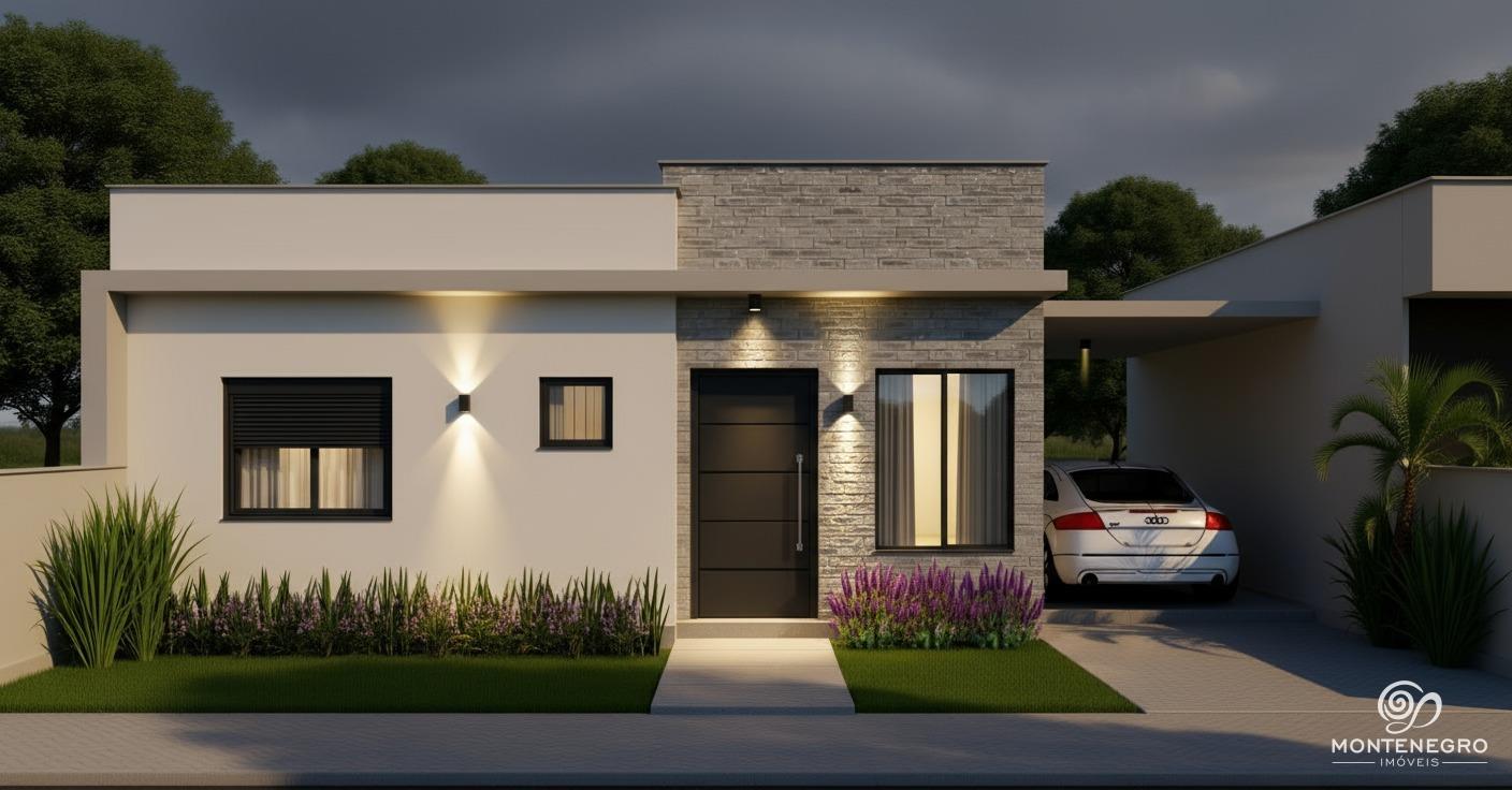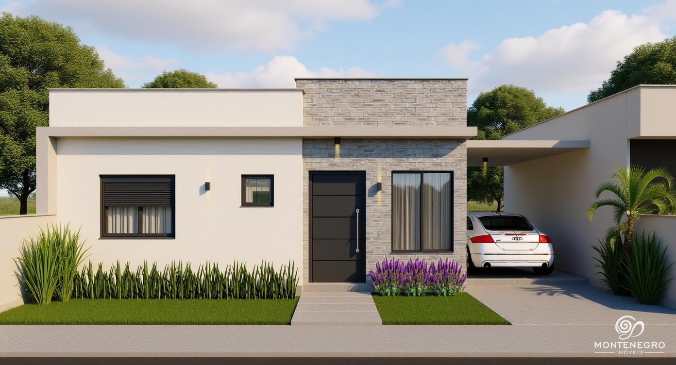 Construção de casa nova no Loteamento San Vicente, próxima ao Fórum, com previsão de entrega para abril de 2026. São 78,99 m² de área construída em um lote de 138,88 m², oferecendo uma confortável suíte, dormitório, banheiro social, sala de estar/jantar integrada à cozinha, área de serviço e garagem para um carro. O imóvel possui pátio fechado nas laterais e fundos, proporcionando privacidade e espaço para lazer.