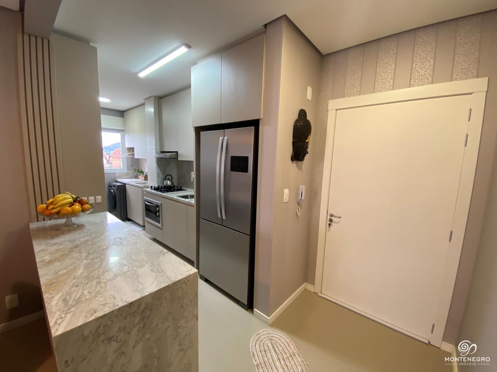 Este apartamento de 73,82m² de área útil combina um projeto arquitetônico diferenciado com móveis de alta qualidade, incluindo cozinha planejada com eletrodomésticos e dois banheiros completos. Com uma suíte, dormitório, sala de jantar integrada à sala de estar com churrasqueira e uma cozinha/área de serviço, oferece conforto e praticidade para seu dia a dia.
