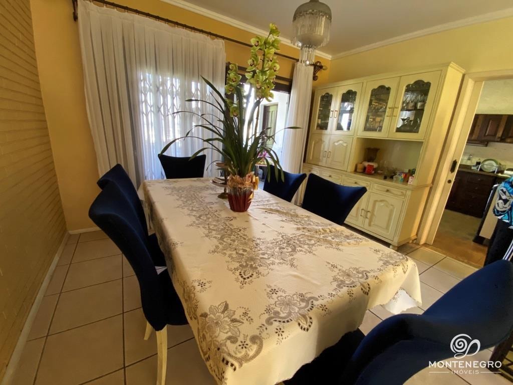 Ampla casa em alvenaria com terreno de 664 m² e uma área construída de 286,61 m², perfeita para quem busca conforto e espaço. Com dois níveis, oferece salas de estar, jantar e TV com lareira, escritório, uma suíte e mais dois dormitórios, além de cozinha, despensa, banheiro social, quiosque com churrasqueira e garagem para dois carros. No piso inferior, há um salão de festas, depósito com potencial para adega, lavanderia e um quiosque externo ideal para momentos de lazer.