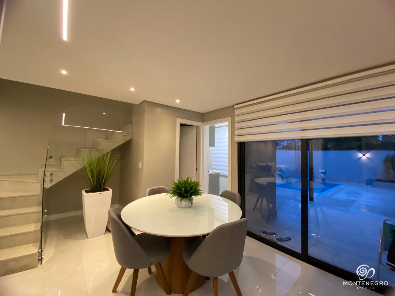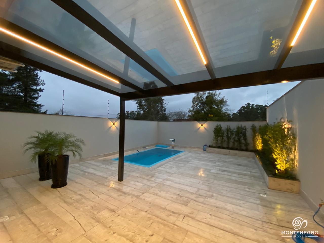 Excelente oportunidade de morar em um sobrado novo, localizado próximo ao Cantegril Clube, com fácil acesso a áreas de lazer, comércio e serviços. Este imóvel mobiliado possui uma ampla suíte com sacada, além de dois dormitórios, banheiro social, sala de estar e jantar integradas à cozinha com churrasqueira, lavabo, área de serviço e piscina aquecida com cascata e iluminação ? tudo pensando no seu conforto. Com sistema de água quente, aberturas em alumínio preto, piso porcelanato na área social e laminado nos dormitórios, oferece modernidade e praticidade.