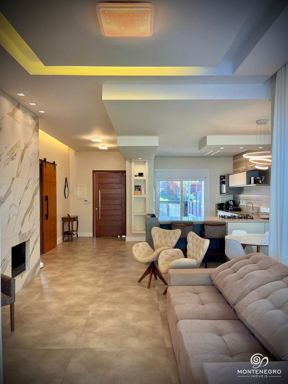 Esta bela residência de 200m², situada em um terreno de 353,90m² no Bairro Senai, oferece uma distribuição moderna e funcional, com uma suíte com closet, mais dois dormitórios e ambientes integrados, incluindo uma ampla área social com lareira, sala de jantar, cozinha e área gourmet com churrasqueira. Com acabamentos de alto padrão, como aberturas automatizadas em PVC, sancas em gesso, piso vinílico e porcelanato, além de sistema de aquecimento a gás, monitoramento por câmeras e energia fotovoltaica, a casa proporciona conforto, segurança e economia.