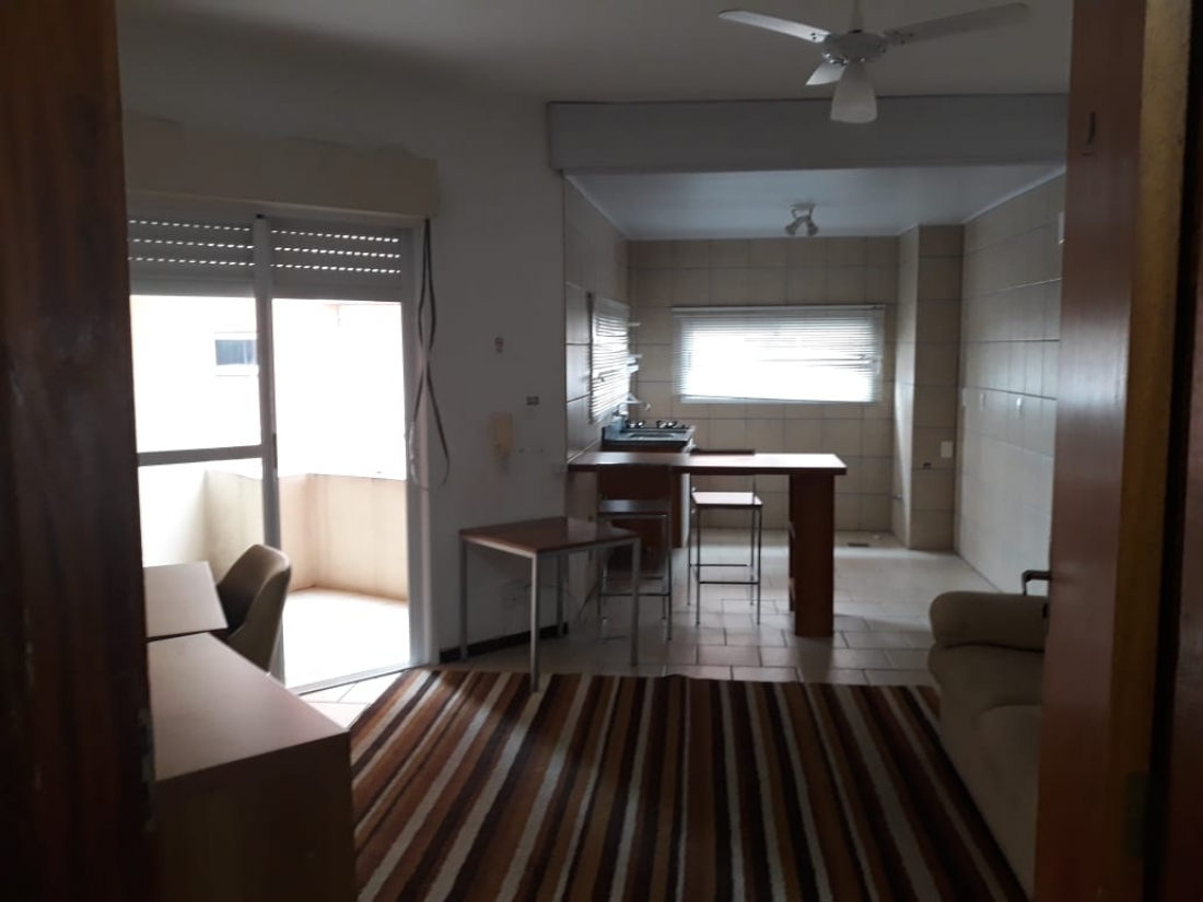 01 dormitório com sacada, banheiro, sala e cozinha conjugada com sacada.