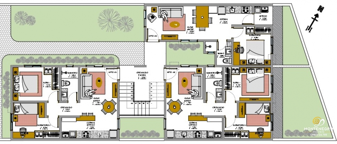- Esquadrias externas em alumínio, com persiana nos quartos