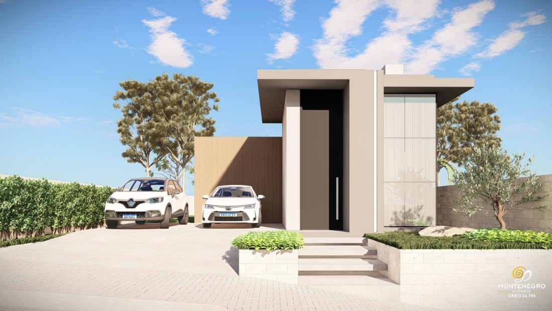 Esta residência possui 3 quartos sendo uma delas Suíte, Sala com pé direito alto que vai gesso e corticeira e também equipada com uma lareira. Também possui um lavabo além de mais 1 banheiro social. Esta casa será equipada com persianas motorizadas nos quartos, espera para ar condicionado (Quartos e sala), e também agua quente encanada. Além de espera para energia Solar. Casas será executada com aberturas em alumínio de alto padrão assim como porcelanato em todos os cômodos. Caso ocorra venda antes do termino das etapas de pintura e piso, abrimos a possibilidade do cliente escolher cores e se por ventura quiser laminado clicando nos quartos, será executado.