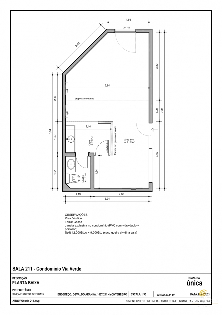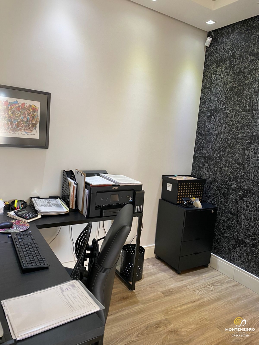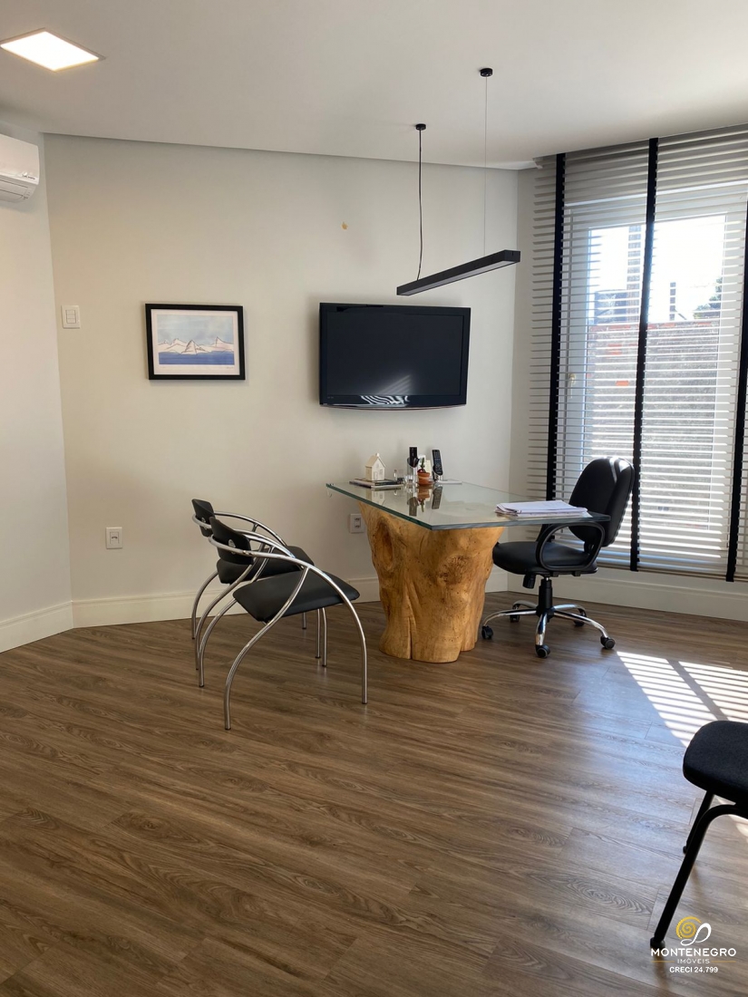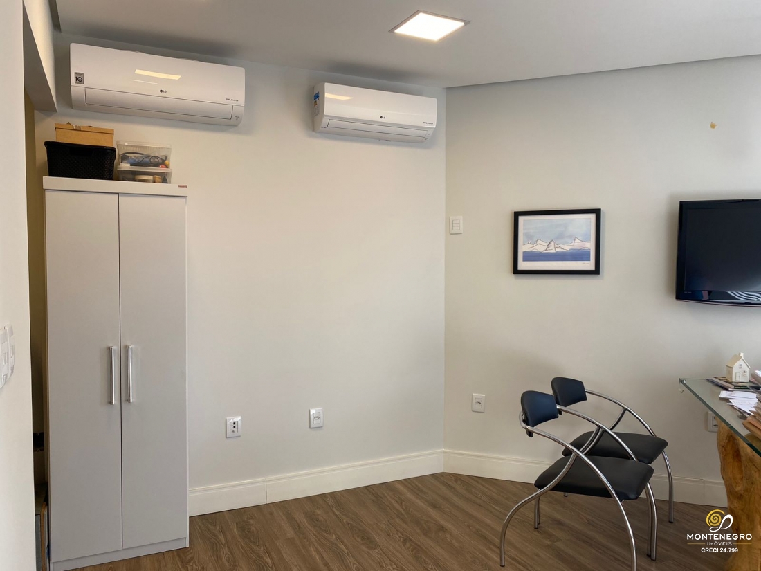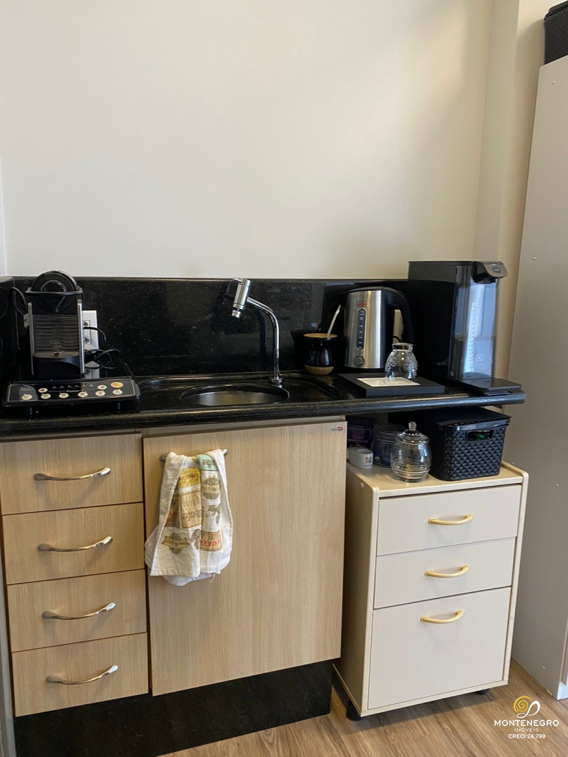 Sala comercial com lavabo e pequena cozinha/copa. Ficam 02 ar splits.
